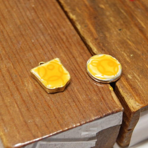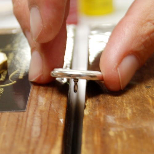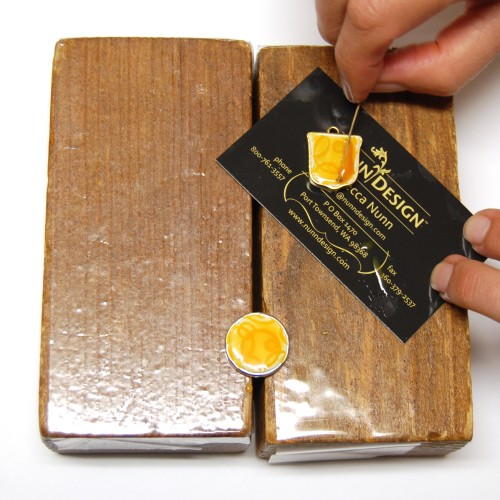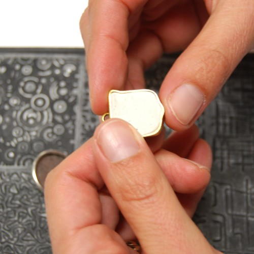 Tip: For findings, such as button shanks or ring, use two wood blocks to create a flat surface. I covered mine with packing tape for easy clean up. -