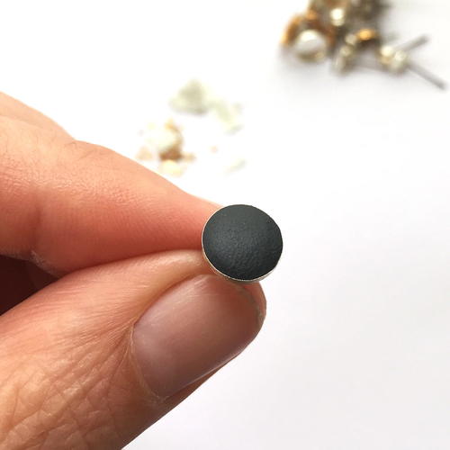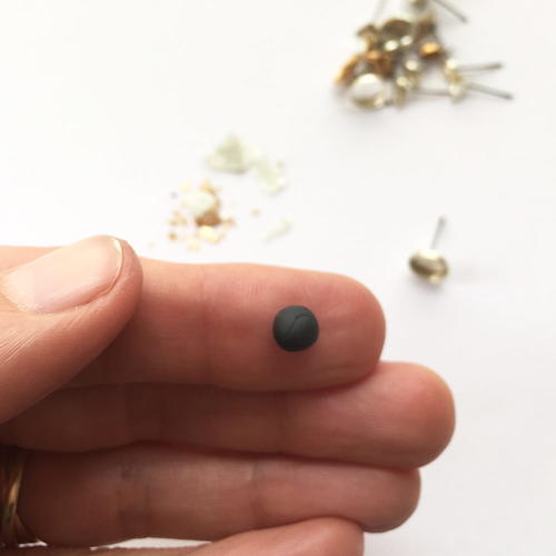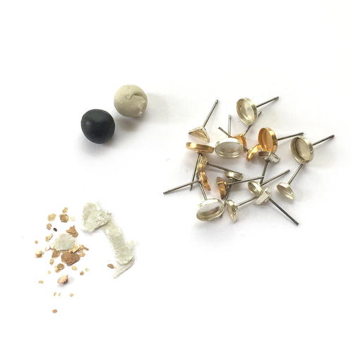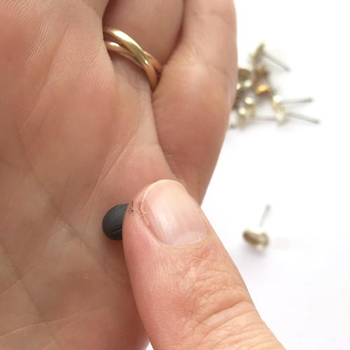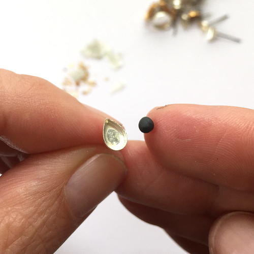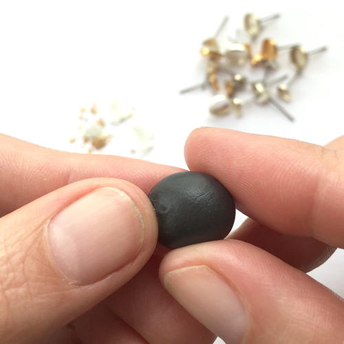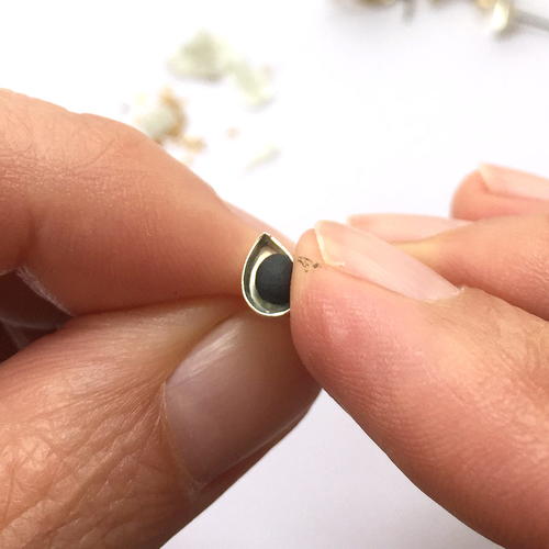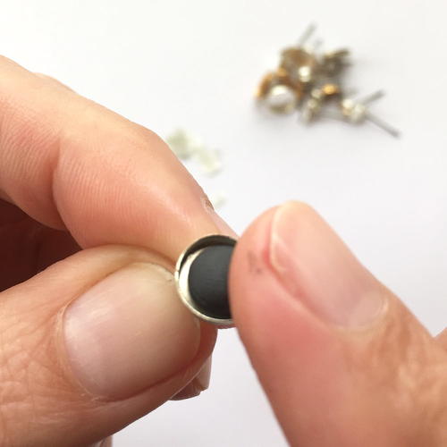 For each earring pinch off a very small ball of clay and roll it into a smooth ball in the palm of your hand. Press the ball into your bezel with your fingers to create an even flat smooth surface in the base of the earring.