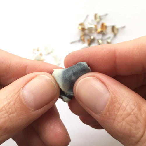 Create a flat surface where the posts of the earrings can poke through and be level. I used a piece of packaging to create this surface.