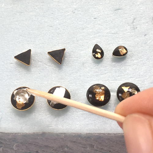 Add on butterfly clutches and have fun sporting your new Bitsy Earrings with Gold Flakes and Resin!