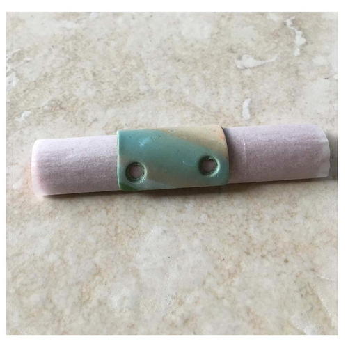 Cut your raw bracelet bead clay to the length you want and drape it over the tube. Trim the clay edges and cure the new barrel shaped beads.