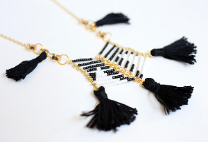 Once you have perfected your tassel making skills, you can try out fun and different ways to incorporate other materials into your tassel jewely, like this beaded tassel necklace. -