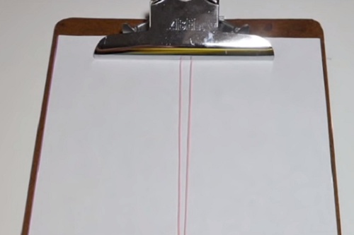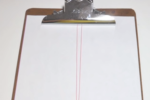 Cut one length of cord approximately 24 inches. Fold in half and secure the looped side under the clip on the clipboard. Secure the two free ends with the binder clip on the lower edge of the clipboard.