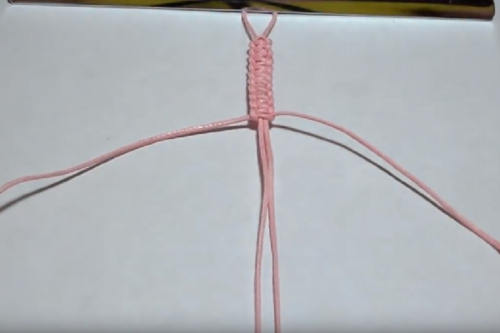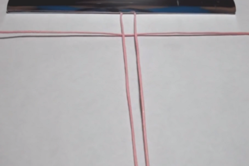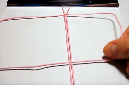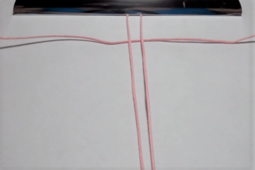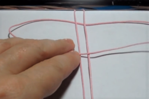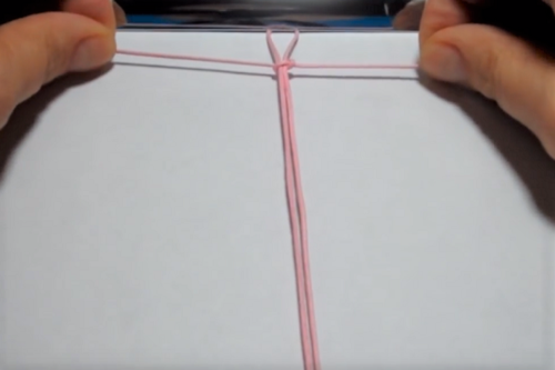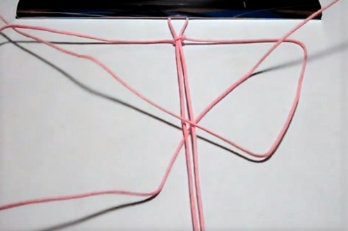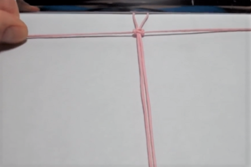 Take the second cord and place it under the center cord, horizontally and centered.