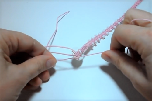 Square knot under the beads either once or twice (depending on the desired look).