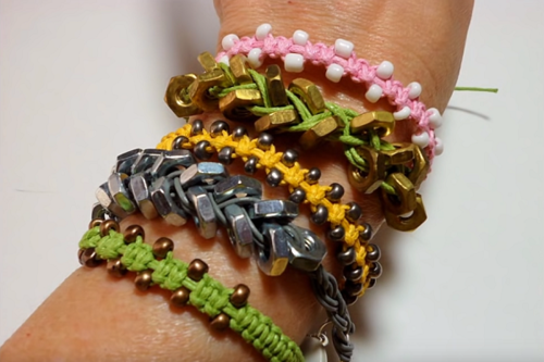 Arm Candy Square Knot Beaded Macrame Bracelets are all the rage lately with celebs and fashionistas. Follow these easy macrame square knot instructions to make your own stackable square knot beaded bracelets. It's a fun and easy project that's perfect for summer accessorizing. Choose your favorite color cord and beads, watch this helpful video tutorial to learn how to macrame these square knot beaded bracelets, and then get started making your own DIY bracelet. This colorful and fun project is sure to become a staple of your summer jewelry collection.