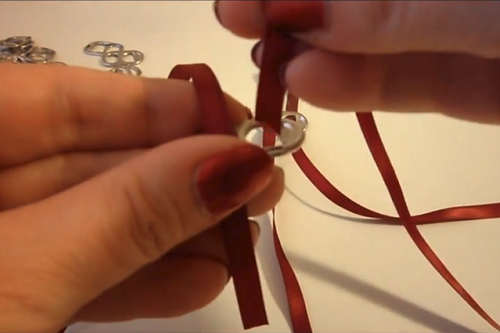 To close Bracelet, bring one end of the 2 ribbon ends up and through the loop on the other end. Tie into a bow and you are done!