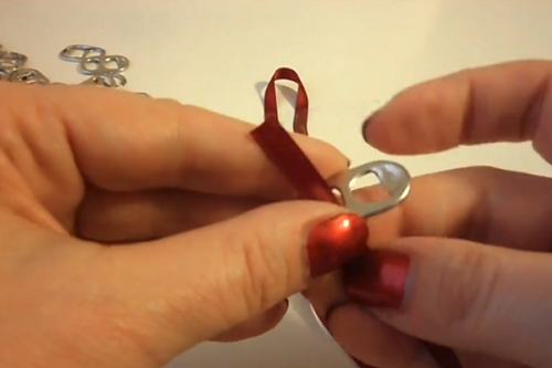 I remember making something like this many years ago. It's great to see it back again. It's very inexpensive, very easy and depending on your choice of ribbon color you can adept it for any season or occasion. Time to start digging thru my recycle bin to get the tabs off of the cans.