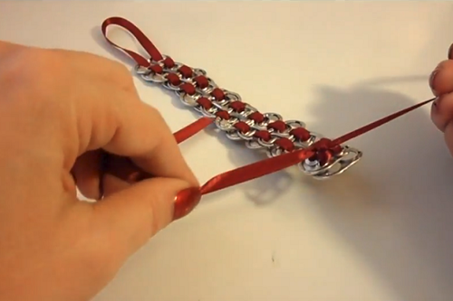 What a creative way to use those throw away tabs! And the bracelet turns out so pretty, too, and looks nothing like it was recycled "stuff". I can see this method being used to make choker type of necklaces or fancy belts or for embellishments on handbags or even jackets, and so on.