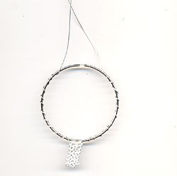 - With the loop centered on the bootom of the hoop, gently wrap the wire around the hoop until each side is1/2" from the center of the top. Ispace the wraps about a 1/4" apart and don't worry about perfection, as this is a funky pendant and the imperfections are part of it's charm.