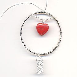 - Place headpin through heart bead and create a wire wrapped loop capturing the two 1/2 pieces of chain in the loop, set aside.