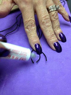 Glue the knot ends. Nip them close and pinch to secure and spread the glue.