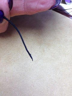 Glue all six ends of your three 2-foot lengths. As the glue dries, pull on the cord, going outward to get it to soak in. Once dry, nip the ends on an angle to create a needle point.