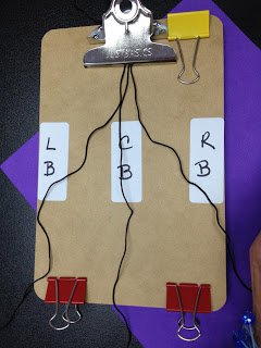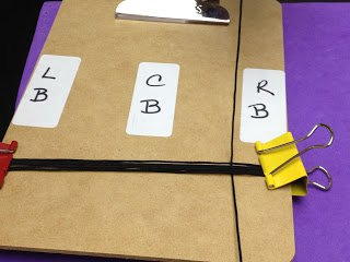 Keeping the cords in order, clip all six cords down on each side of your clipboard.