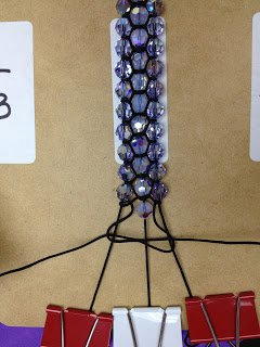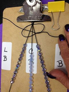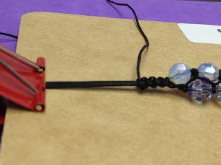 *When you get to the point of having four to six beads remaining on each beading cord, you can unclip your three beading cords and move them closer together.
