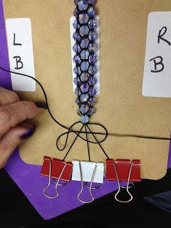 Take your bracelet off the clipboard. You need to lay your bracelet upside down at the bottom of your clipboard. Pull the beading cords up and overlapping on the top of your clipboard.