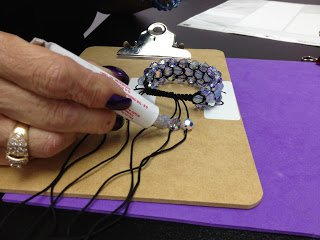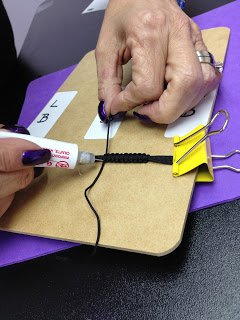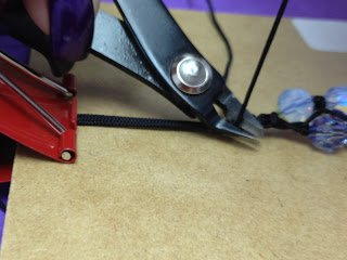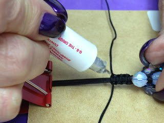 Glue the ends of your knotting cords at the knot line with a generous amount of glue. Nip them close to the knot and pinch to secure and spread the glue.