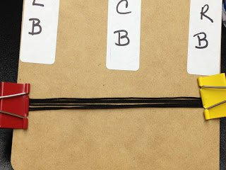 Pull your ends tight and clip them to the bottom of the clipboard with the binder clips.