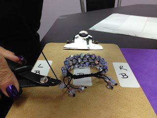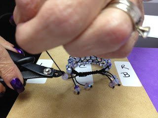Unclip and remove your bracelet from the clipboard. Pull your beading cords until your knots line up and form your finished bracelet.