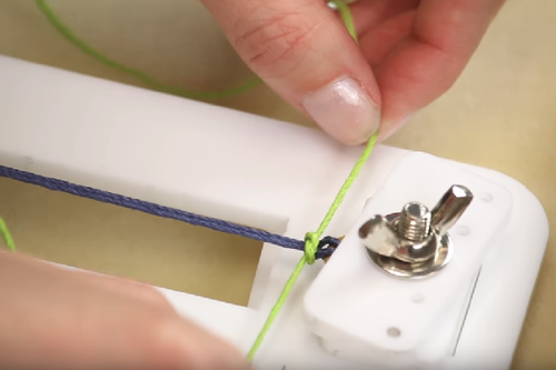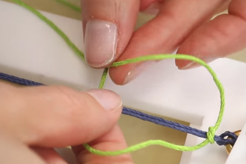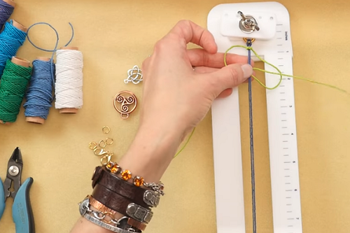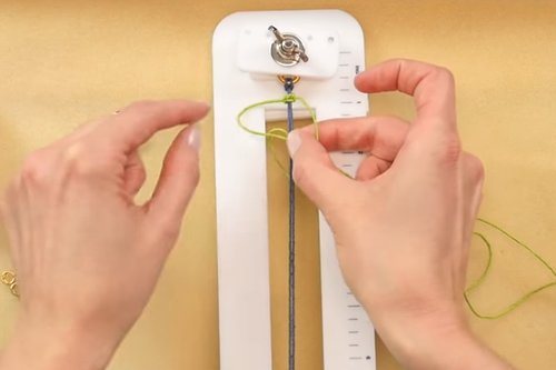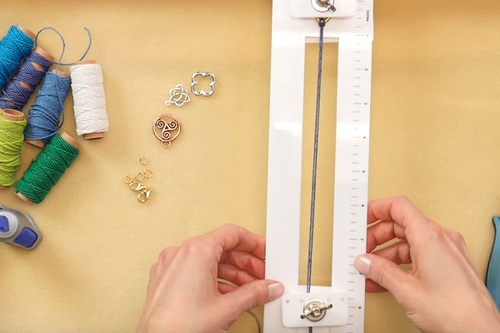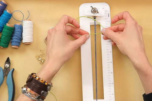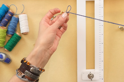 Attach your cords to Beadalon’s Tying Station by securing the decorative link beneath the wing nut. Then, anchor the tails of the cord to the other end of the Tying Station. If you are not using the Tying Station, you can clip the end of your cord onto a clipboard, or simply pin or tape the cord onto a steady surface.