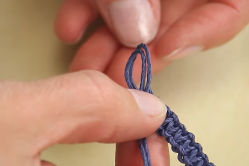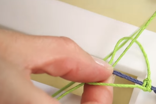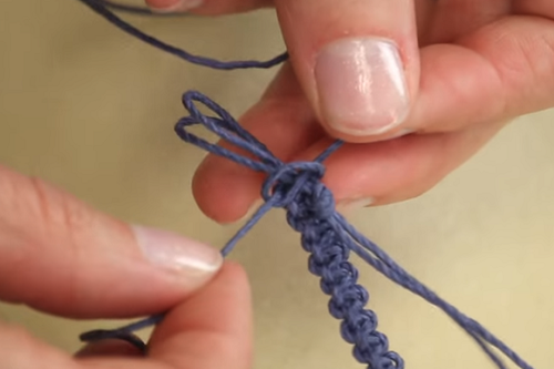 Then, the right cord will pass under the center cord and up through the left side loop.