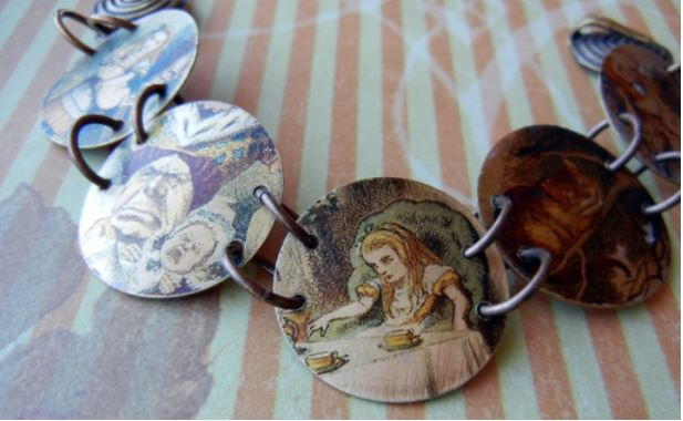 Transferring images to metal is a great way to personalize your own metal jewelry to give it a vintage look. Follow these instructions to make Alice in Wonderland jewelry like the example shown, or use any images you like. This tutorial will show you how to transfer any image from paper onto your metal jewelry. These beginner tips and tricks will make every DIY metal jewelry project a breeze. You can also use these techniques to permanently color your metal projects, too. Now you will know how to make your metal jewelry more intricate and unique!