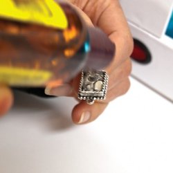 Let cure for 20 minutes under a glass dish on the windowsill in direct sunlight or under a UV lamp. It must have the full intensity of the sun (no clouds) to cure.