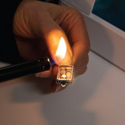 Use the headpin, matches, or a lighter to pop any bubbles that come to the surface. The headpin can be used directly on the bubble. To use the matches or lighter, hover the flame closely over the bubble in the resin – this will pull the bubble to the top and pop it. Be careful to keep the flame from actually touching the resin.