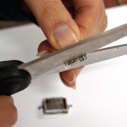 Using your cutters, cut the loop off of the end of the Mini Link Circle. Glue the piece into the center of the Small Link Circle using strong glue such as Bond 527 Cement or E6000.