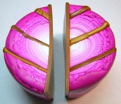 Arrange the canes in a way that is pleasing to you. We like to make a "splash" of leaves that radiates out from a central point. Use your Etch 'N Pearl tool to secure the cane slices. When you have your heart the way you want it, bake it as directed above.
