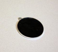 Using the Clay Conditioning Machine on #7 setting, make a sheet of Black clay. Using the round pendant finding, make an impression in the Black sheet of clay. Using the toothpick, spread a small amount of the Bake and Bond adhesive onto the round pendant finding. Using the craft knife, cut out the circle pattern and glue into the round pendant finding.