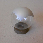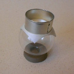 1. Place a large chunk of scrap clay on a ceramic tile. Embed the stem of a light bulb the scrap clay. This will allow the glass bulb to stand on its own. Roll the Pearl clay through the Clay Conditioning Machine on a #3 setting. With the Super Slicer cut a 2” square of clay and form it over the glass bulb.