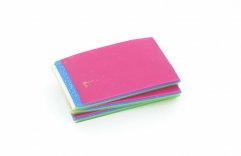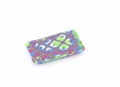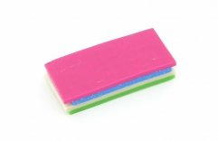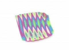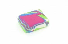 With the Clay Conditioning Machine on the #1 setting (the thickest), roll a sheet of Premo! Accents Bright Green Pearl, Pearl, Blue Glitter and Premo! Fuchsia. Cut a 2” x 3” from each sheet and stack them up as shown.