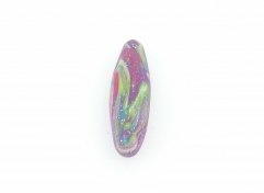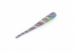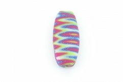 Sandwich the filler bead in between the ripple bead shape and the mokume gane bead shape. Gently form the design sides around the filler beads so the filler bead is completely encapsulated. Spend some time shaping your bead now so that it is the shape you would like it to be. Using the small etch n pearl tool, very gently poke a hole the length of your reversible bead.