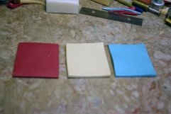 Roll all 3 colors separately through the Clay Conditioning Machine on the thickest setting (lightest to darkest). Using the Super Slicer Rigid Blade, cut all 3 pieces to the same size (2” x 2”).