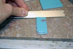 Using the flexible blade from the Super Slicer, cut across the top of the stack making thin slices and put them aside on a piece of paper. You will use these slices to cover your heart. The slices should be 1” in diameter.
