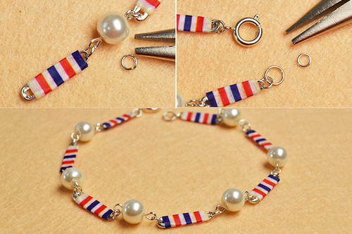 Connect the ends of the safety pin bracelet with a jump ring and a lobster clasp.