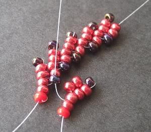 Pick up 4 seed beads and slide them down to the beadwork.