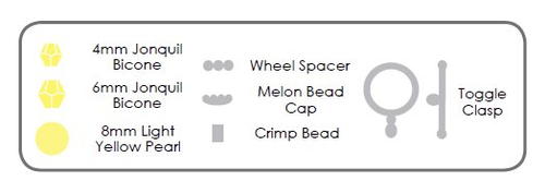 The Sunny Day Bracelet from Prima Bead is sure to brighten your mood every time you wear it. Bracelet making patterns don't get any easier or cuter than this. This simple strung pattern is a piece of cake to put together. Learn how to make a beaded bracelet using the most basic jewelry making techniques with this free tutorial. Simply string pastel yellow pearls and crystals on a strand of beading wire, finish off with a silver toggle clasp, and instantly add a bit of sunshine to your accessories. It's one of the most cheerful bracelet patterns you've ever seen!
