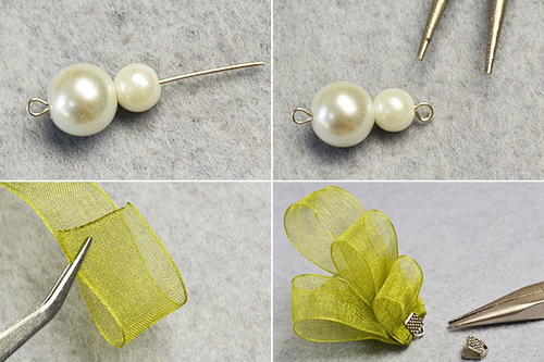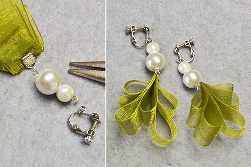 NotesToday’s ornaments are made with easy materials, which can be found on Beebeecraft quickly. Prepare some ribbon, pearl beads and some findings, you can make the earrings sucessfully.