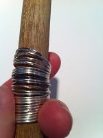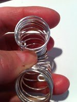 - Net a round stick, or a big marker, and coil the sterling silver wire around until you have about 1 1/2" on the stick, take it off the stick and with the round nose pliers create two tiny rings on both end of your "spring".