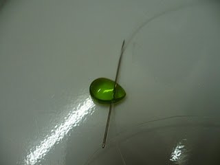 - Once the needle is out of the bead, wrap it around and thread the same bead one more time. What we're doing here is trying to use the bead as a knot. For more stability loop your thread once through the loop over the bead as well.