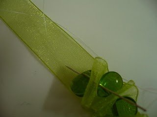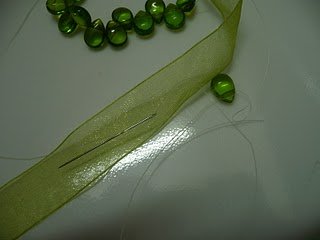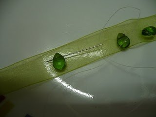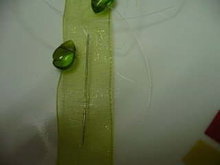 - After threading every bead make 2 running stitches instead of one. If the ribbon is pretty it will show more this way.