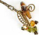 With 1-inch headpins, make five of each dangle (15 total) and attach to each loop and filigree leaf.