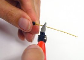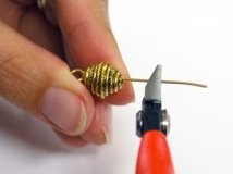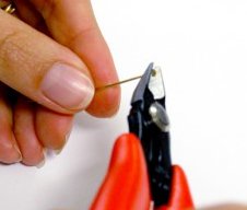 Using one of the headpins, trim off the head part with a pair of cutting pliers. Repeat with second headpin.