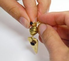 Using a pair of needle nose pliers, make a loop on the bottom half of the headpin. Prior to closing the loop, attach the Elongated Heart Charm. Repeat.
