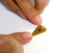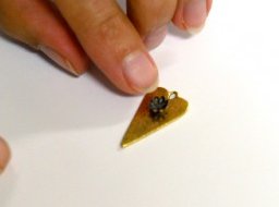 To add the flower to the elongated hearts, use the tiny bit of clay we set aside from step 2. Press the bead cap into the clay. Repeat with second elongated heart.