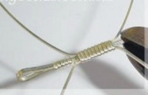 Now, using a half round wire secure the 4 wires together. Do this from the point just below the original wrap finishes. The wraps should go for about 1cm (10 wraps). So far, your pendant should look like this: