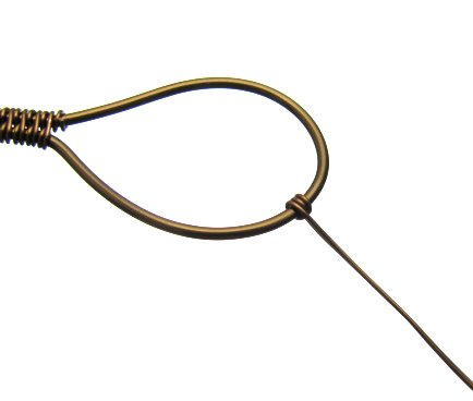 Take 14cm of 18ga wire, and make a teardrop-shape that is smaller than the cabochon. Then, use flat nose pliers to angle the tail ends off as per the photo.