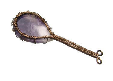 One by one, take each individual wire at attach it to the back frame with two wraps. It is easiest if you do the top two first as this will help hold the stone in place.